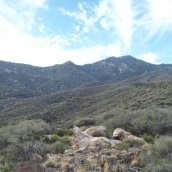 t gloves at about 9:30 am. The ridge started out rocky and crumbly but quickly gave way to Manzanita and then trees as I topped out onto the Alta Seca bench. I remember the shelter of large pinyon pine trees along the lower portion of the ridge in the late eighties. I watched them go brown, become skeletons, and eventually topple over. Only the trunks remain now. The rock outcroppings overlooking Rockhouse Valley made for great views as I made my way from one to the next until I got to Toro summit just before noon.